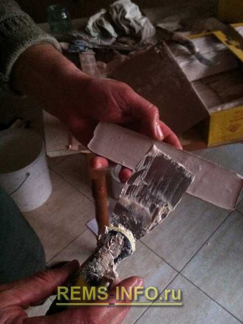 - Проступающий в швах раствор нужно сразу же удалить резиновым шпателем и смыть его остатки кистью, смоченной в чистой воде.
