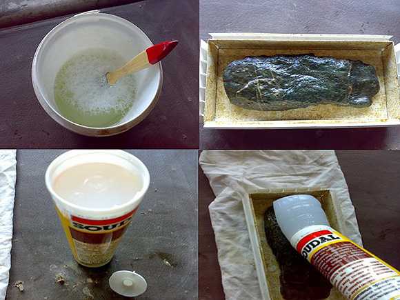 Декоративную гипсовую плитку можно сделать своими руками. Для этого нужно смешать воду, гипсовый порошок и пластификатор в виде клея ПВА. Залейте смесь в заготовленную форму и дождитесь высыхания. Можно добавить пигмент для окраски массы или нанести краску на дно формы до заливки.