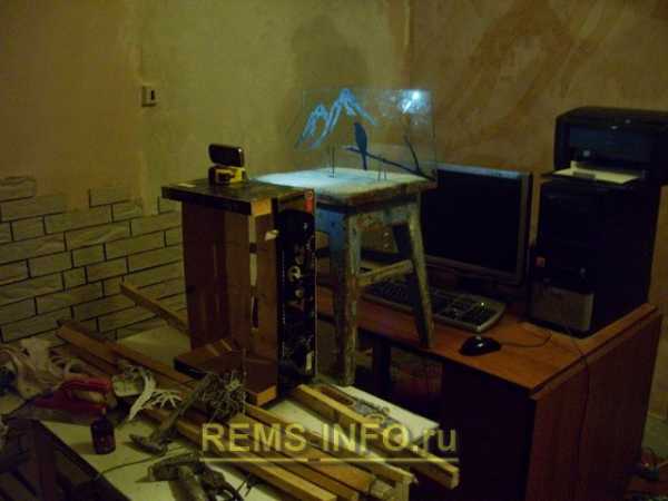 Для укладки плитки в форме рисунка, нужно нарисовать на стене эскиз. Для этого, распечатал нужный рисунок, вырезал его и приклеил на стекло, а вечером при свете фонарика нанес карандашом на стену.