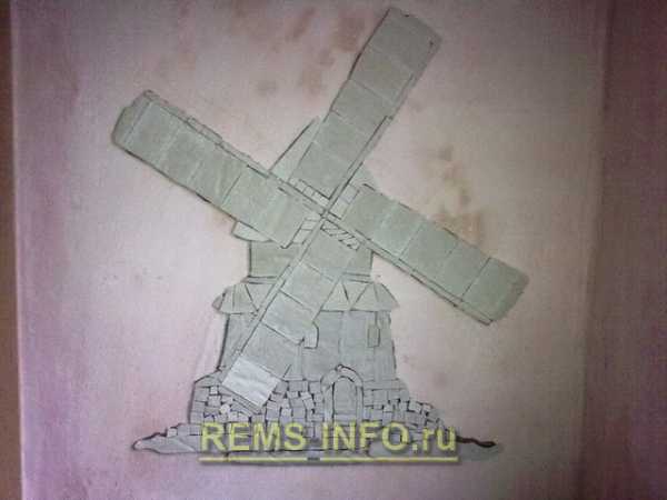 - сложнее сделать объемный рисунок, для этого нужно постараться и по эскизу вырезать и выложить все элементы. Так я сделал мельницу;