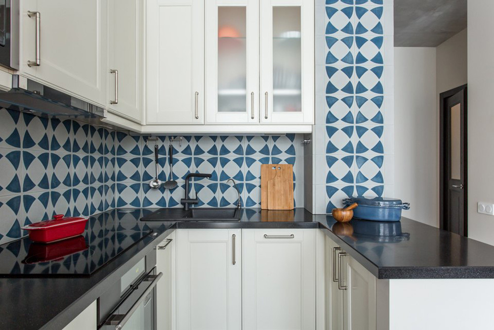 Роскошный вид плитки, оформленной в энкаустическом стиле, позволяет создавать по-настоящему яркие фартуки.