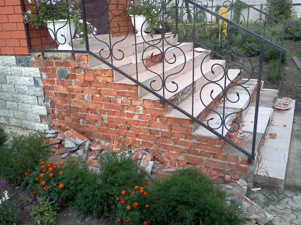 Совет: Крыльцо из тротуарной плитки нельзя посыпать солью для удаления льда. Она очень быстро разъест облицовку и уже весной отделка потеряет всю свою привлекательность, начав крошиться. То же самое касается и других видов искусственных плиток.