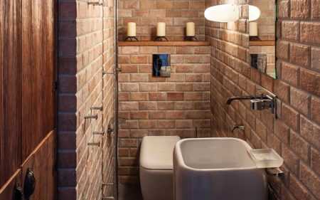 Ванная с кирпичной кладкой
