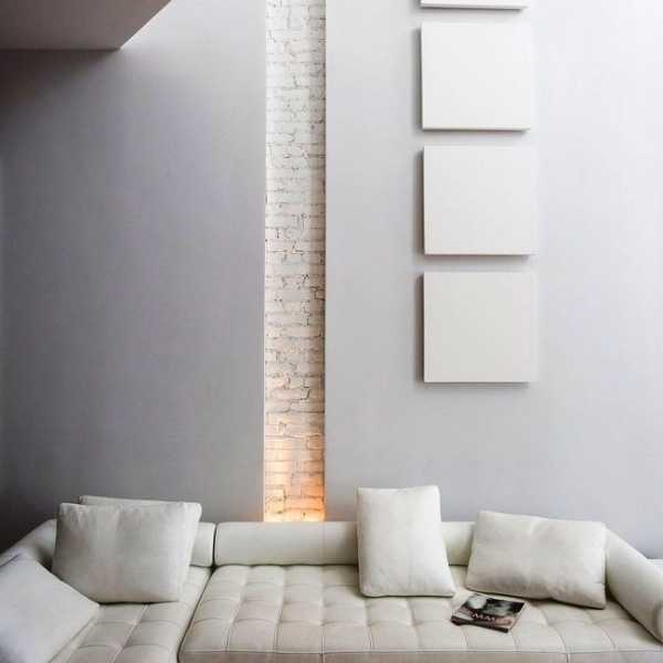 Декоративный кирпич, выкрашенный в белый цвет визуально расширяет пространство и не «поглощает» свет