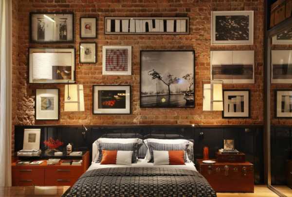 Стена в спальне, отделанная декоративным кирпичом