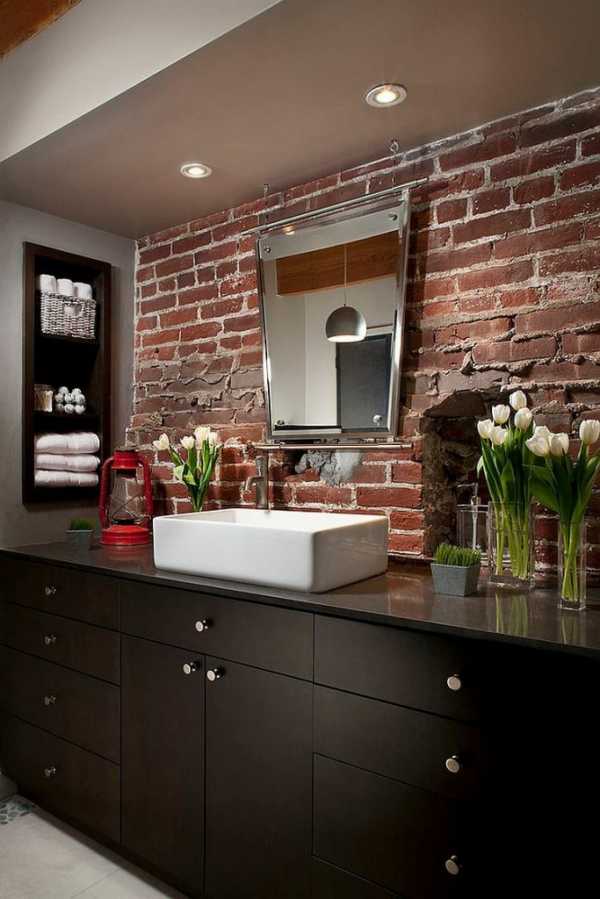 Кирпич в ванной комнате, 40 фото. Красивые интерьеры и дизайн