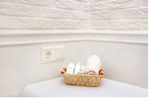 Белый кирпичик- универсальный материал для тех, кот хочет оформить ванную комнату со вкусом и не ошибиться. Такую плитку можно использовать для интерьеров в самом разном стиле.