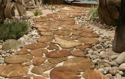 В качестве строительного сырья могут быть использованы старые поваленные деревья, которые можно найти на своем участке или в ближайшей лесополосе. Стволы деревьев можно распилить на небольшие элементы округлой формы (спилы), из которых может получиться прекрасная садовая тропинка или тротуар. Причем расположение элементов может быть самым разнообразным: единичным, мощеным в виде ровной дорожки на газоне или петляющей тропинки между цветочными клумбами.