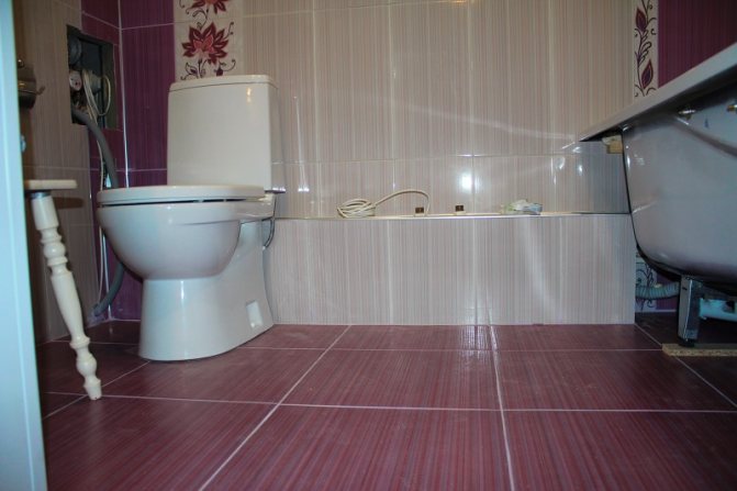 В этом случае, в подготовленное для укладки плитки помещение, заносится и ставится ванна. Чаще этот способ применяется, когда устанавливается чугунная ванна, так как если заносить ее после отделочных работ, кафельное напольное покрытие можно сильно повредить.