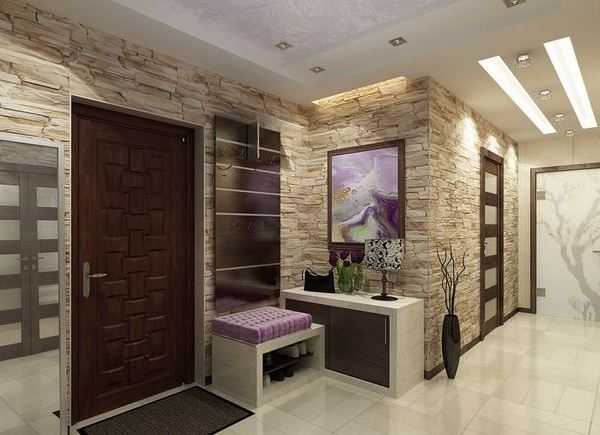 - Каменная создаст эффект массивности, добавит помещению свежести.