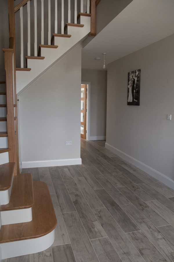 В темный цвет оформляются участки, распложенные недалеко от входа в дом. Для сочетания с плиткой подираются прочные и износоустойчивые напольные покрытия. Коридор – это комната, где уборка производится намного чаще, чем в других комнатах, поэтому пол должен хорошо выдерживать воздействие чистящих средств. Наиболее подходящие это ламинат, хотя слишком агрессивных химических веществ, он боится.