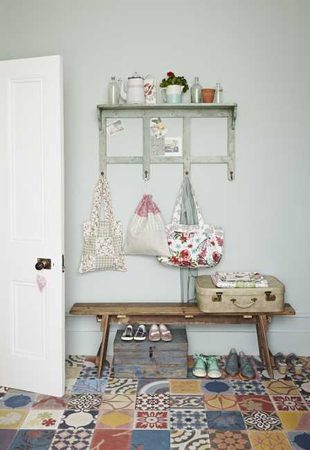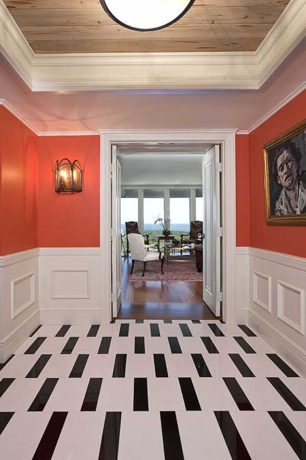 В зоне входа в квартиру смотрится естественно. Остальную площадь пола можно оформить в виде:
