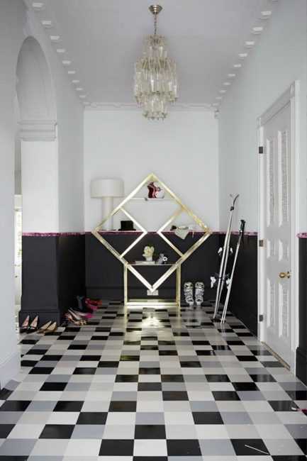 В черно-белом варианте оформления полов придется хорошо постараться, приложив массу усилий и терпения. Белые зоны должны обязательно стать доминантными, освещение усилить.