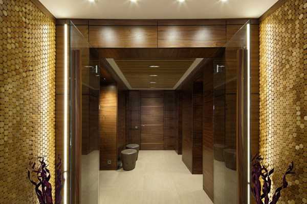 Для создания декоративного эффекта, мастера часто отделывают несколько участков плиткой с краплениями в рисунке. Неплохой в качестве украшения, будет смотреться встроенная подсветка.
