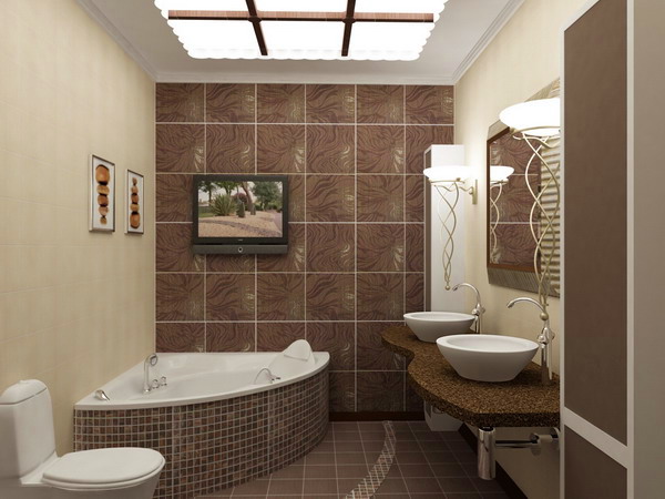 Плитка, увеличивающая пространство в ванной, должна быть средних размеров, не более 15х15 см. Слишком крупным форматам в маленькой ванной тесно, это становится заметно.