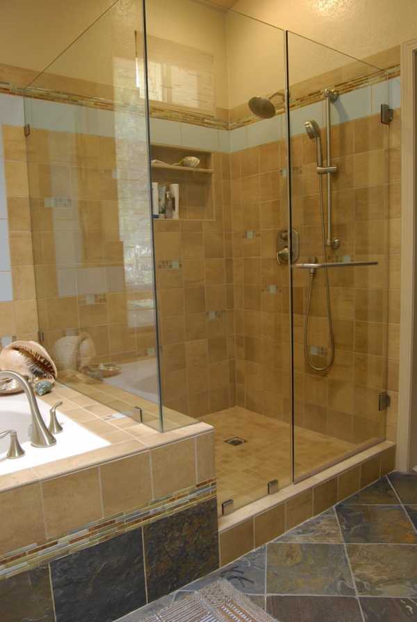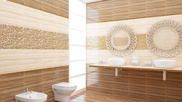 Например, применив бежевый и шоколадный цвета, стены отделывают светлой керамикой с каштановыми вставками. Пол в этом случае облицовывают полностью коричневым кафелем.