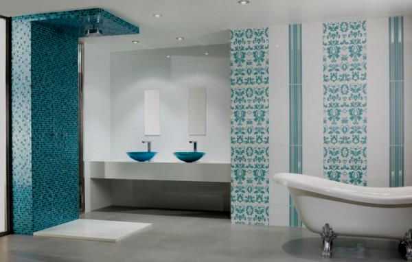 В 2016-2017 в моде — все оттенки бирюзового. Также актуальны насыщенный синий, желтый, красный, пастельные голубые и розовые тона, белая плитка как компаньон цветной.