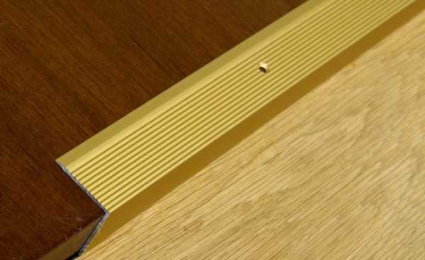 Часто порожки призваны скрыть перепады между напольными покрытиями. Если перепад небольшой, это можно сделать обычным металлическим порогом, прикрепив его под углом.