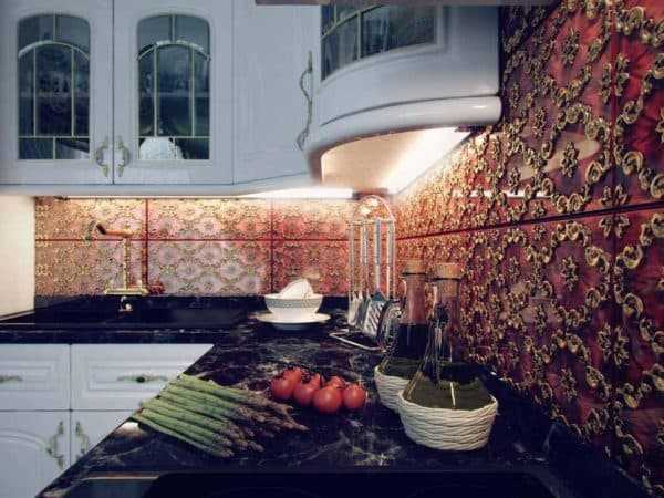 Рельефная плитка украсит и сделает интерьер кухни очень оригинальным с помощью объемных сложных узоров, разнообразных орнаментов и рельефов, нанесенных на такую плитку.