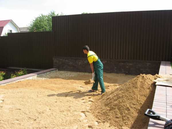 Π£ΠΊΠ»Π°Π΄ΠΊΠ° ΠΏΠ»ΠΈΡΠΊΠΈ Π½Π° Π³ΡΡΠ½ΡΠΠ°Π½Π½ΡΠΉ Π²ΠΈΠ΄ ΡΠΊΠ»Π°Π΄ΠΊΠΈ ΡΠ΅Π·ΠΈΠ½ΠΎΠ²ΠΎΠΉ ΠΏΠ»ΠΈΡΠΊΠΈ ΠΏΠΎΠ΄Ρ ΠΎΠ΄ΠΈΡ Π΄Π»Ρ ΡΠ°Π΄ΠΎΠ²ΠΎΠ³ΠΎ ΠΈΠ»ΠΈ Π΄Π°ΡΠ½ΠΎΠ³ΠΎ ΡΡΠ°ΡΡΠΊΠ°. ΠΠ»ΠΈΡΠΊΠ° Π΄ΠΎΠ»ΠΆΠ½Π° Π±ΡΡΡ ΡΠΎΠ»ΡΠΈΠ½ΠΎΠΉ ΠΎΡ 3 ΡΠΌ. ΠΠ½Π°ΡΠ°Π»Π΅ ΡΠ½ΠΈΠΌΠ°ΡΡ Π²Π΅ΡΡ Π½ΠΈΠΉ ΡΠ»ΠΎΠΉ ΠΏΠΎΡΠ²Ρ ΠΈ ΡΡΡΠ°ΠΌΠ±ΠΎΠ²ΡΠ²Π°ΡΡ ΠΏΠΎΠ²Π΅ΡΡ Π½ΠΎΡΡΡ. ΠΠ°ΡΠ΅ΠΌ Π½Π°ΡΡΠΏΠ°ΡΡ ΡΠ΅Π±Π΅Π½Ρ (ΡΠΎΠ»ΡΠΈΠ½Π° ΡΠ»ΠΎΡ 9 ΡΠΌ), Π° ΡΠ°ΠΊΠΆΠ΅ ΠΏΠ΅ΡΡΠ°Π½ΠΎ-ΡΠ΅ΠΌΠ΅Π½ΡΠ½ΡΡ ΡΠΌΠ΅ΡΡ. ΠΠ½Π° Π±ΡΠ΄Π΅Ρ ΡΠ²Π»ΡΡΡΡΡ ΠΎΡΠ½ΠΎΠ²ΠΎΠΉ Π΄Π»Ρ ΠΏΠ»ΠΈΡΠΎΡΠ½ΠΎΠ³ΠΎ ΠΏΠΎΠΊΡΡΡΠΈΡ. ΠΠ΅ΡΠ΅Π΄ ΡΠΊΠ»Π°Π΄ΠΊΠΎΠΉ, Ρ ΠΏΠΎΠΌΠΎΡΡΡ ΠΆΠΈΠ΄ΠΊΠΎΠ³ΠΎ ΡΠ°ΡΡΠ²ΠΎΡΠ° Π100, ΡΡΡΠ°Π½Π°Π²Π»ΠΈΠ²Π°ΡΡ Π±ΠΎΡΠ΄ΡΡΡ. ΠΠ»ΠΈΡΠΊΡ ΡΠΊΠ»Π°Π΄ΡΠ²Π°ΡΡ Ρ Π·Π°Π·ΠΎΡΠΎΠΌ 5-7 ΠΌΠΌ. ΠΠ±ΡΠ°Π·ΡΡΡΠ΅Π΅ΡΡ ΠΏΠΎΠΊΡΡΡΠΈΠ΅ Π²ΡΡΠ°Π²Π½ΠΈΠ²Π°ΡΡ ΠΊΠΈΡΠ½ΠΊΠΎΠΉ, ΠΏΡΠΈ ΠΏΡΠΎΡΠ΅Π΄Π°Π½ΠΈΠΈ ΠΎΡΠ΄Π΅Π»ΡΠ½ΡΡ ΡΠ»Π΅ΠΌΠ΅Π½ΡΠΎΠ² ΠΏΠΎΠ΄ΡΡΠΏΠ°ΡΡ ΠΏΠ΅ΡΠΎΠΊ. ΠΠ°Π·ΠΎΡΡ ΠΌΠ΅ΠΆΠ΄Ρ ΠΏΠ»ΠΈΡΠΊΠ°ΠΌΠΈ Π·Π°ΠΏΠΎΠ»Π½ΡΡΡ ΠΏΠ΅ΡΠΊΠΎΠΌ, ΡΡΠΎ Π΄Π΅Π»Π°ΡΡ ΡΠ΅ΡΠΊΠΎΠΉ, ΠΌΠ΅Π½ΡΡ Π½Π°ΠΏΡΠ°Π²Π»Π΅Π½ΠΈΠ΅ Π΄Π²ΠΈΠΆΠ΅Π½ΠΈΡ. ΠΡΡΠ°ΡΡΠΈΠΉΡΡ ΠΏΠ΅ΡΠΎΠΊ ΡΠ΄Π°Π»ΡΠ΅ΡΡΡ Π²ΠΎΠ΄ΠΎΠΉ. ΠΠ°ΠΊΠ»ΠΎΠ½ ΠΏΠΎΠ²Π΅ΡΡ Π½ΠΎΡΡΠΈ ΠΏΡΠΈ ΡΡΠΎΠΌ Π½Π΅ΠΎΠ±ΡΠ·Π°ΡΠ΅Π»Π΅Π½. ΠΠ»Π°Π³Π° ΡΡ ΠΎΠ΄ΠΈΡ Π² ΠΏΡΠΎΠΌΠ΅ΠΆΡΡΠΊΠΈ ΠΌΠ΅ΠΆΠ΄Ρ ΠΎΡΠ΄Π΅Π»ΡΠ½ΡΠΌΠΈ ΡΠ»Π΅ΠΌΠ΅Π½ΡΠ°ΠΌΠΈ ΠΏΠΎΠΊΡΡΡΠΈΡ.