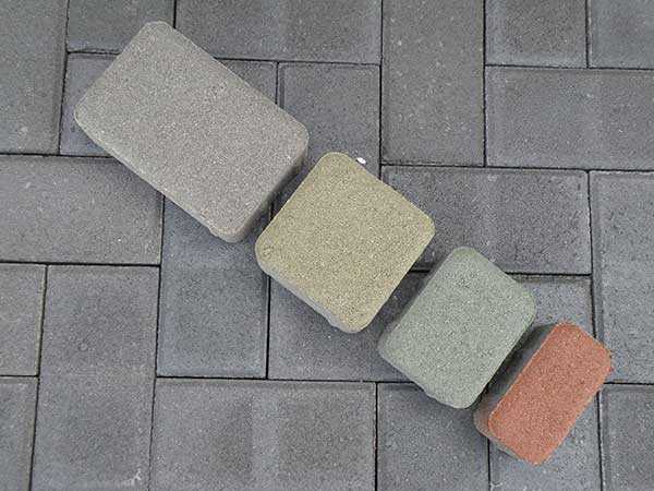 - бетонная – традиционный материал, составляющий основную долю категории тротуарных плиток. Добавление в изделие красителей позволяет получить необходимый цвет брусчатки;
