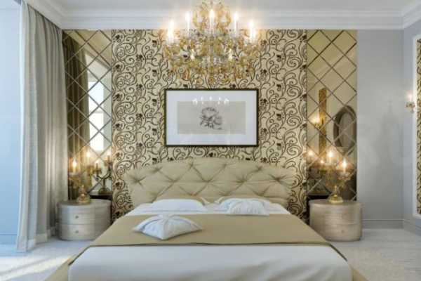 - Оптимальное место расположения зеркальной плитки в спальне – над изголовьем кровати.