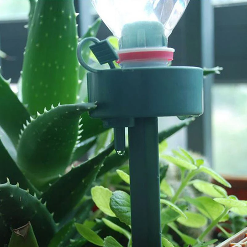 Какие у вас горшки, большие или маленькие? Растения быстрорастущие или не очень? На сколько дней хватит воды? Можно, при необходимости, поставить несколько бутылок или пластиковую канистру из жёсткого пластика.
