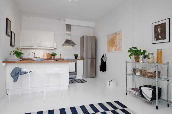 Белый пол в кухне