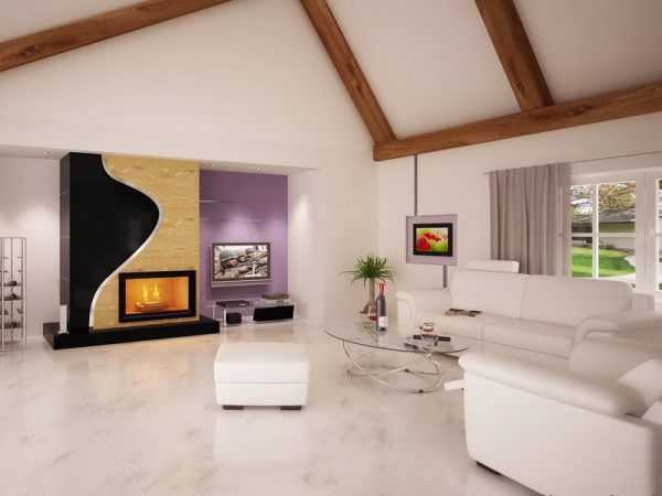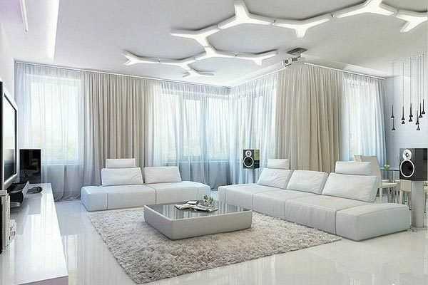 Дизайн гостиной с белым полом (фото):