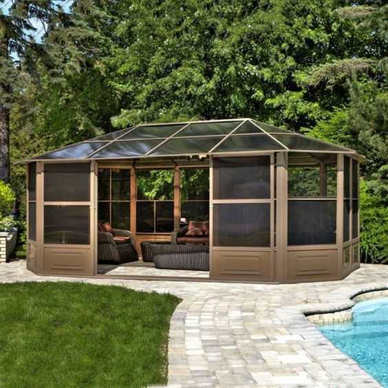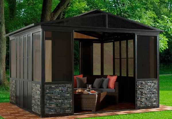 Если вы мечтаете о закрытой беседке, то, как правило, приходится обращаться за помощью к специалистам. Они разрабатывают дизайн, закупают материалы, занимаются строительными манипуляциями.