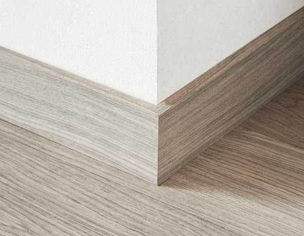 В зависимости от того, из какого материала основной настил, подбирается и материал планки. Так если пол из массива беленого дуба, или паркета, то идеальным решением будет установить белый деревянный плинтус.