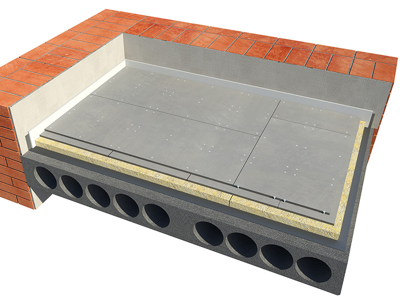 Крепление цементно-стружечных изделий производится на направляющие балки, между которыми помещают гранулированный материал.