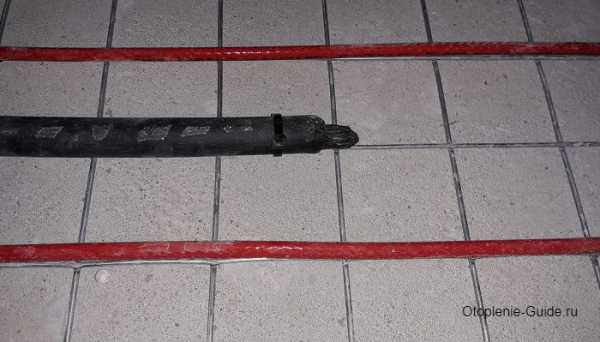 Важно! Обязательно трубка надежно герметизируется, чтобы в нее не попадал мусор, пыль и раствор. Другой конец гофрированной трубки направляется к терморегулятору. Сама трубка прокладывается скрытым способом в полу и стене.