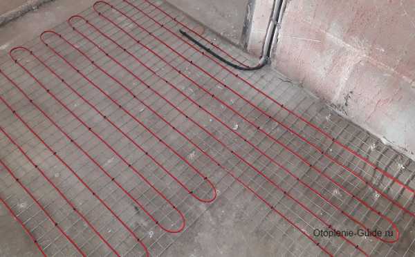 Совет! После укладки греющих контуров и устройства по измерению температуры можно выполнить стяжку. Однако будьте предельно осторожными, чтобы в ходе заливки стяжки не повредить греющие элементы и сам датчик.