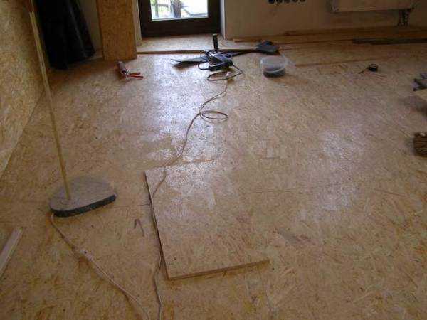 Далеко не всегда имеется возможность выполнить стяжку пола по стандартной технологии с использованием цементно-песчаного раствора и маяков. Материалы для наливных полов порой слишком дороги, а их монтаж своими руками вызывает ряд затруднений у неподготовленных строителей. Другое дело ОСП: дешево, просто и быстро, при этом результат вполне приемлемый и нареканий почти никогда не вызывает.