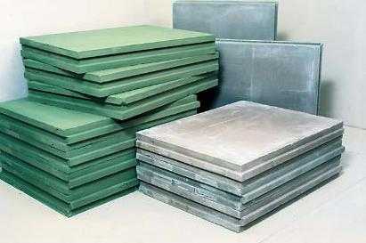 - Готовый состав отправляют под пресс, после чего материал приобретает вид литых плит с гладкой поверхностью. Как они выглядят, видно на фото.