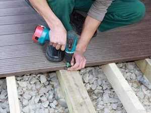 Лаги должны быть не тоньше 2 смТакое устройство предполагает монтаж досок на деревянные лаги, прочно зафиксированные на бетонном основании. Такой метод можно использовать только в том случае, если их толщина более 20 мм. В противном случае, они будут прогибаться под нагрузкой.