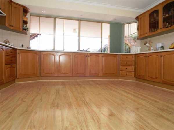 Ламинатная доска изготовлена по самым современным технологиям, имеет уникальные характеристики, но все же не стоит такое покрытие укладывать в рабочей зоне, из-за низкой влагоустойчивости его. Пятна вывести почти нереально. Доски укладываются на специально подготовленную поверхность.