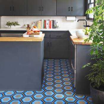 Квадрат и прямоугольник — самые популярные форматы плитки для пола. Реже встречается керамическая или цементная плитка шестиугольной или восьмиугольной формы. Как правило, ее используют в классических или традиционных кухонных интерьерах.