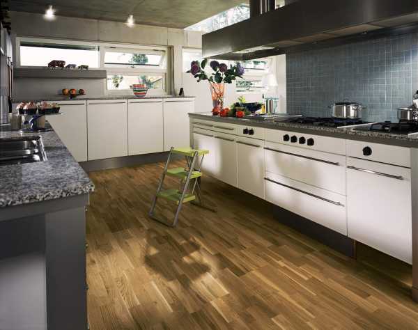 Выбирая на кухню пол, важно помнить и про паркет. Доски его славятся своей устойчивостью, а некоторые древесные породы специально проходят обработку маслами, чтоб устойчивыми были к влаге.