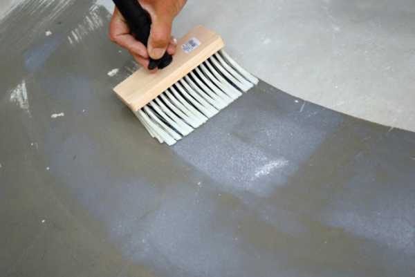 Клеят линолеум, если площадь свыше 20 м2. Изначально наносится грунтовка на поверхность линолеума изнутри и также на основание, чтобы было лучше сцепление, а после, по прошествии суток, наносится клей. Полотно укладывается на пол на клей и далее, как следует разравнивается валиком.