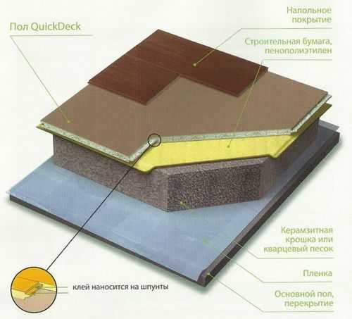 - Устройство пола. Причем этот материал подойдет как для устройства обычных черновых полов, так и плавающих.
