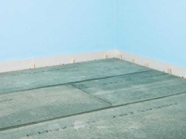 На подготовленное основание производится укладка гидроизоляции. Это может быть мембрана или обычная полиэтиленовая пленка с толщиной в 200 мкм. На стену нужно выполнить нахлест в 10 см. Отдельные части гидроизоляции под листы укладываются с нахлестом между собой в 10 см. При этом шов проклеивается скотчем. Чтобы в дальнейшем не возникало скрипов листов ДСП при хождении, можно сделать подложку из пробки или вспененного полиэтилена. Размеры комнаты переносятся на лист в масштабе 1 к 10. Далее можно наилучшим образом подобрать раскрой листов ДСП, чтобы было минимум обрезков. Раскрой можно заказать на мебельных фабриках или выполнить самостоятельно.