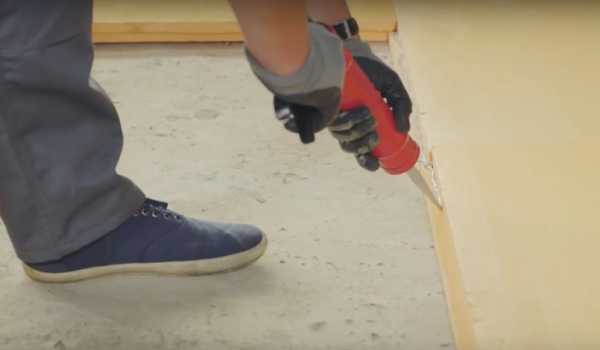 ΠΡΠΎΡΡΡΠ°Π³ΠΈΠ²Π°Π΅ΠΌ ΠΏΠΎΠΊΡΡΡΠΈΠ΅, ΡΠ΄Π°Π»ΡΠ΅ΠΌ Π½Π΅ΡΠΎΠ²Π½ΠΎΡΡΠΈ ΠΈ ΡΡΠ°ΡΡΡ ΠΊΡΠ°ΡΠΊΡ. ΠΡΠΎΠ²Π΅ΡΡΠ΅ΠΌ Π»Π°Π·Π΅ΡΠ½ΡΠΌ ΡΡΠΎΠ²Π½Π΅ΠΌ Π³ΠΎΡΠΈΠ·ΠΎΠ½ΡΠ°Π»ΡΠ½ΠΎΡΡΡ ΠΏΠΎΠ²Π΅ΡΡ Π½ΠΎΡΡΠΈ Π΄Π΅ΡΠ΅Π²ΡΠ½Π½ΠΎΠ³ΠΎ ΠΎΡΠ½ΠΎΠ²Π°Π½ΠΈΡ. ΠΠ»Ρ Π·Π°ΠΊΡΡΡΠΈΡ ΡΠ΅Π»Π΅ΠΉ ΠΈΡΠΏΠΎΠ»ΡΠ·ΡΠ΅ΠΌ ΡΠΈΠ»ΠΈΠΊΠΎΠ½ΠΎΠ²ΡΠΉ Π³Π΅ΡΠΌΠ΅ΡΠΈΠΊ, Π½Π°Π½ΠΎΡΠΈΠΌ Π½Π° ΠΏΠΎΠ²Π΅ΡΡ Π½ΠΎΡΡΡ Π΄Π΅ΡΠ΅Π²ΡΠ½Π½ΠΎΠ³ΠΎ Π½Π°ΡΡΠΈΠ»Π° Π³ΡΡΠ½ΡΠΎΠ²ΠΊΡ, ΡΡΠΎΠ±Ρ Π½Π΅ ΠΏΠΎΡΠ²ΠΈΠ»Π°ΡΡ ΡΡΡΠΎΡΡΡ ΠΈ ΠΏΠ»Π΅ΡΠ΅Π½Ρ.