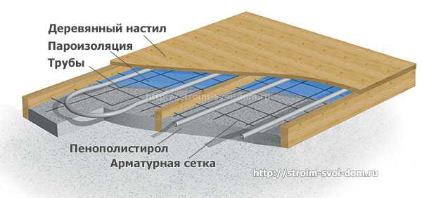 Водяное отопление под деревянным полом на лагах