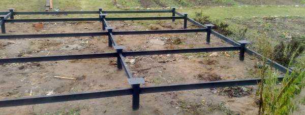 - поверх бетонного пласта водружаются столбы из кирпича (25х25 см), наверх укладываются лаги;