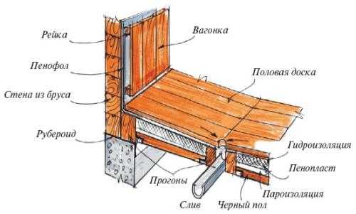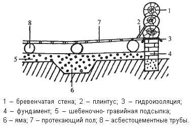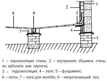 Схема конструкции протекающего пола
