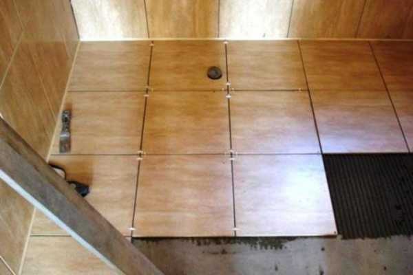 Перед началом работ с отделочными материалами необходимо убедится о правильном оттоке воды, иначе в будущем возникнет необходимость вскрывать пол и переделывать систему слива воды.