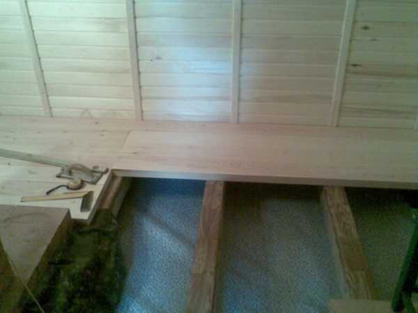 - на лаги стелятся доски, толщина которых превышает 2 см. При этом, доски берутся шириной до 15 см, а расстояние между лагами равняется 60 см. В некоторых случаях, доски крепятся к балкам;