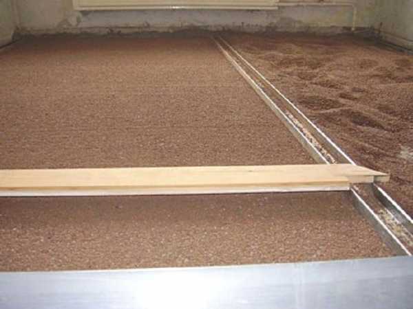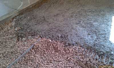 - Далее следует утеплитель — керамзитовый слой, толщина которого может составлять от 100 до 150 мм.